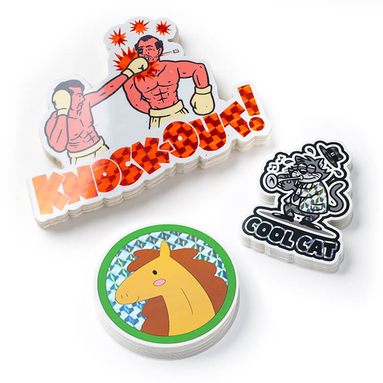 Give your stickers a shiny retro effect with our prismatic sticker material. This material is a mosaic of small holographic squares that change appearance in different angles of light. Our prismatic material also gives off a bit of a 3D effect, adding some dimension to your stickers. This material is holographic but a little more eye-catching since it's a whole bunch of small holographic squares.