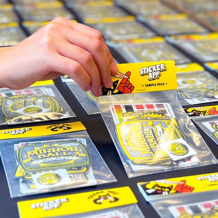 The price includes packing your stickers into individual bags and adding an optional header card. The minimum order is 100 packs.