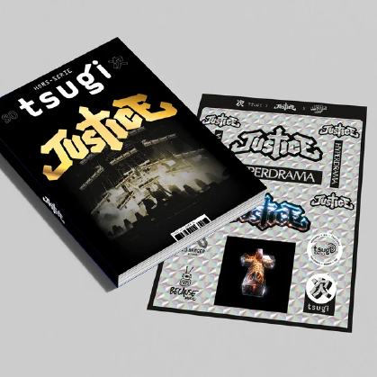 Pour le mook spécial JUSTICE, on voulait en faire un objet collector avec stickers & flexidisc. Après sélection avec Pedro Winter (boss du label Ed Banger) et les membres de Justice, on a opté pour une planche full prismatic, sobre et impactante. La collab avec StickerApp a été fluide : passion partagée pour le graphisme, super conseils techniques, rendu top… et des délais de livraison bluffants.