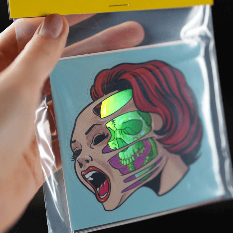 Your sticker pack will include your stickers packed in a plastic bag that fits your biggest sticker, along with a matching-sized header card.